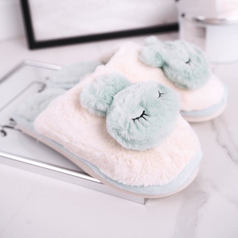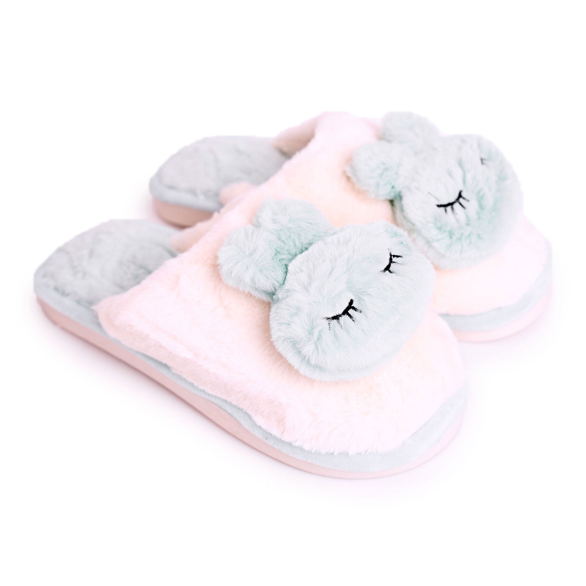 Dámské kožešinové pantofle Světle zelený králík růžový