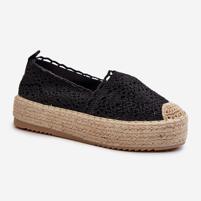 Dámské krajkové espadrilky na platformě černá elarosová černý