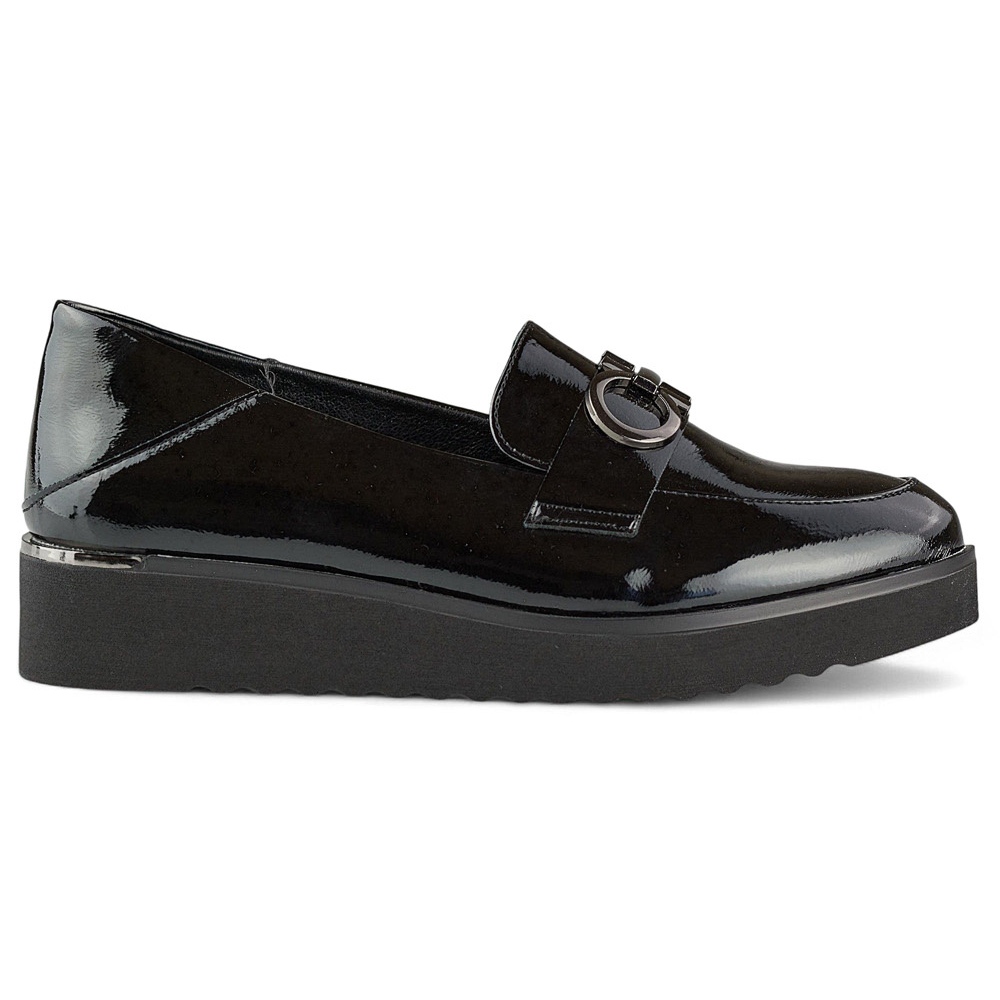 Dámské lakované boty na nízkém klínku, elegantní boty černý