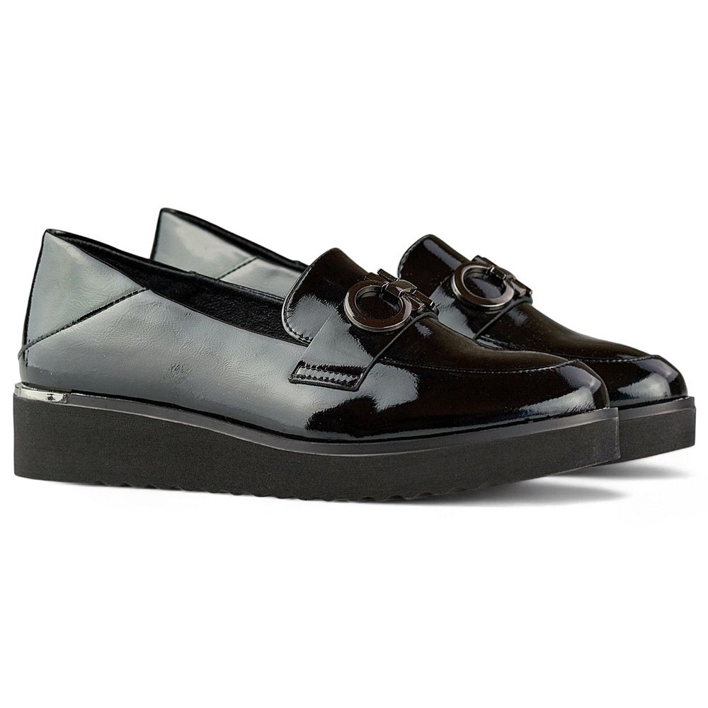 Inna marka Dámské lakované boty na nízkém klínku, elegantní boty černá
