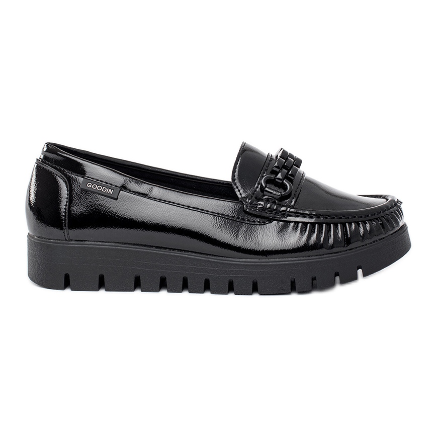 Goodin Dámské lakované boty se silnou podrážkou černý