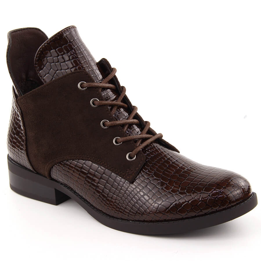 Podrobnosti: Dámské lakované kotníkové boty, hnědé, Vinceza 16477 hnědý