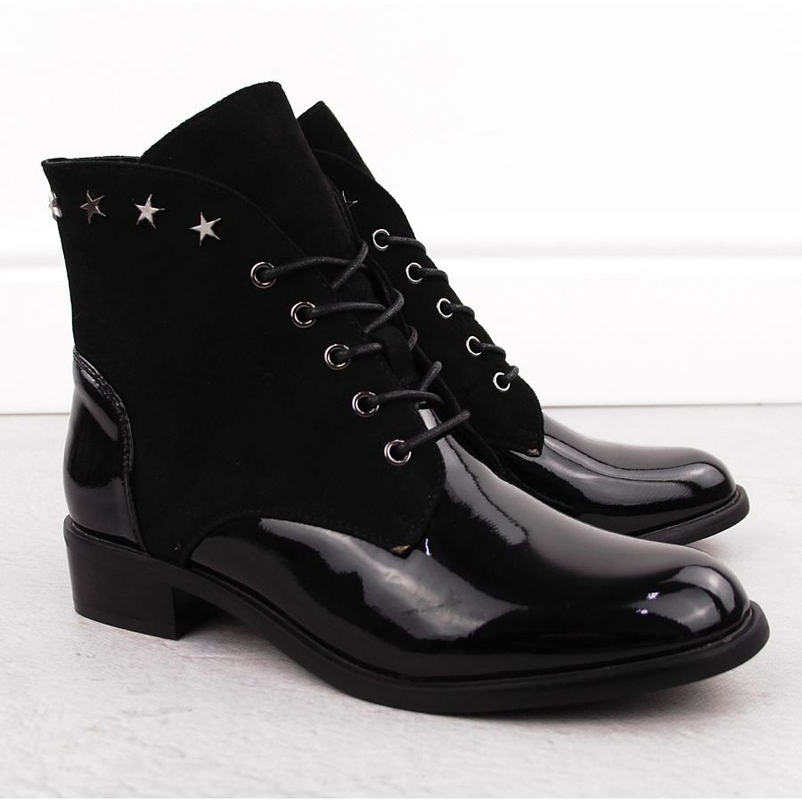 Sabatina Dámské lakované kotníkové boty s nýty, černá Sabatina DM24-25P