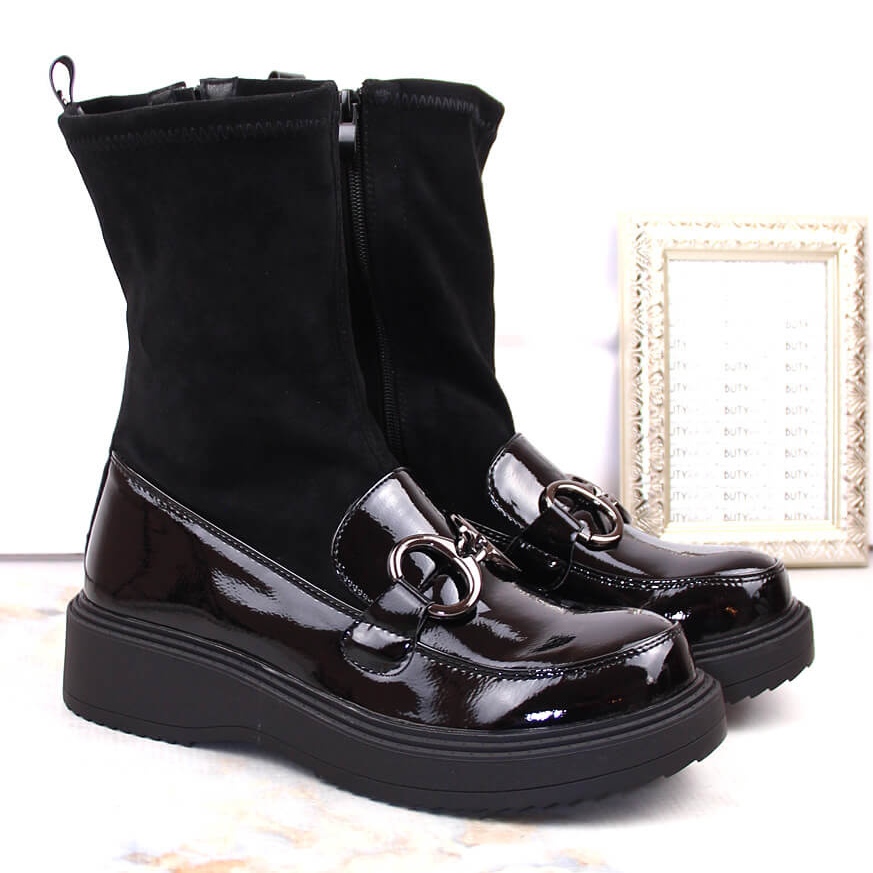 Sabatina Dámské lakované kozačky na platformě, zateplené černé Sabatina DM23-18N černá