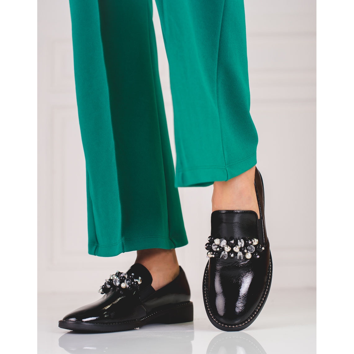 Podrobnosti: Dámské lakované lordy se zdobením, černé černý
