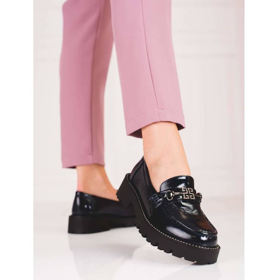 Představujeme dámské lakované mokasíny se silnou podrážkou značky Shelovet v elegantní tmavě modré barvě. Tyto módní boty jsou dokonalou kombinací klasického a moderního stylu, ideální pro každodenní i formálnější příležitosti.