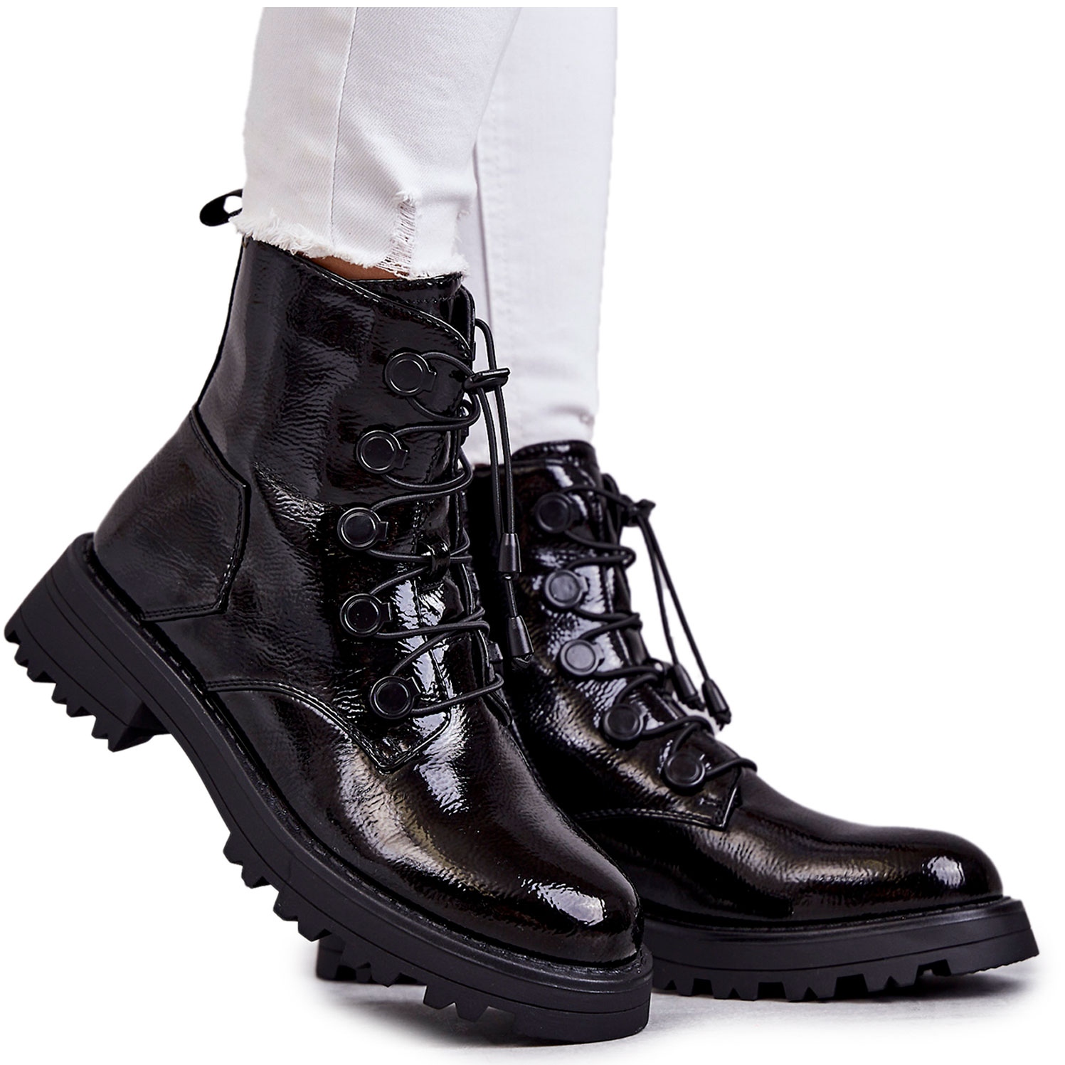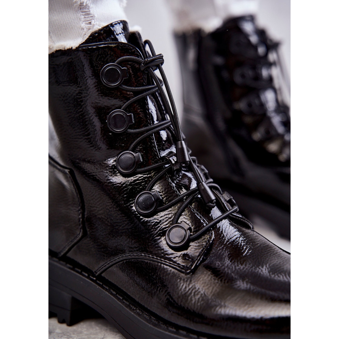 - Model: Dámské zateplené kotníkové boty z lakované kůže