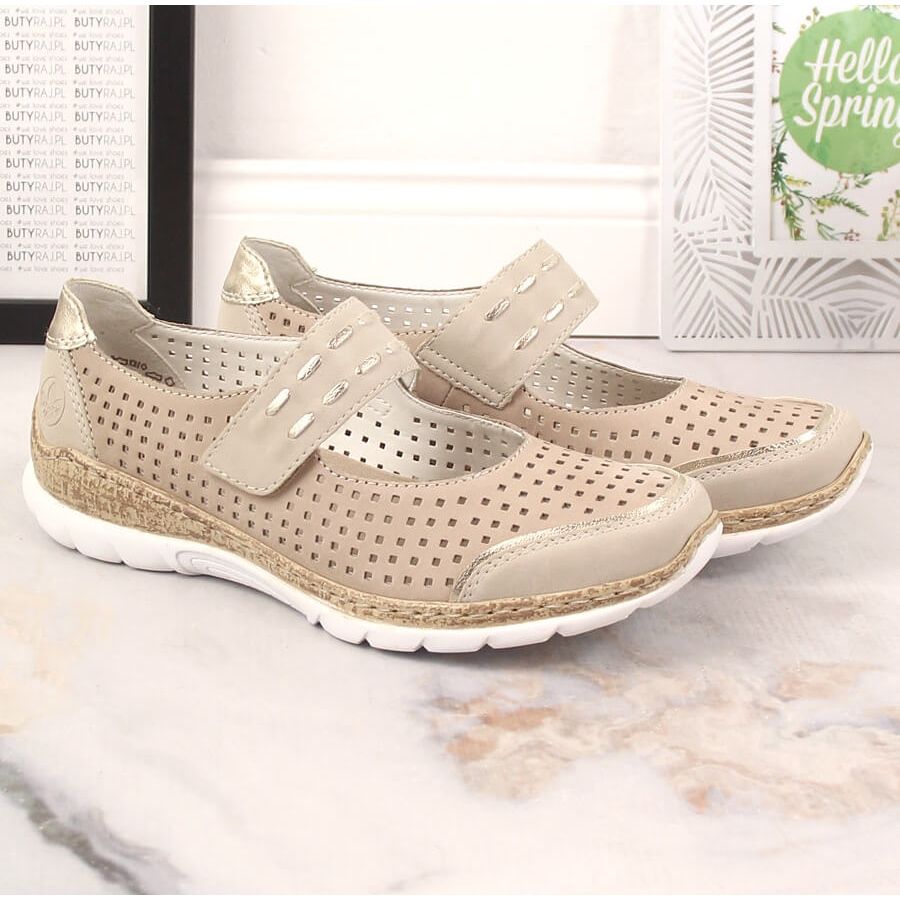 Podrobnosti: Dámské letní kožené boty na suchý zip béžové Rieker N4257-60 béžový