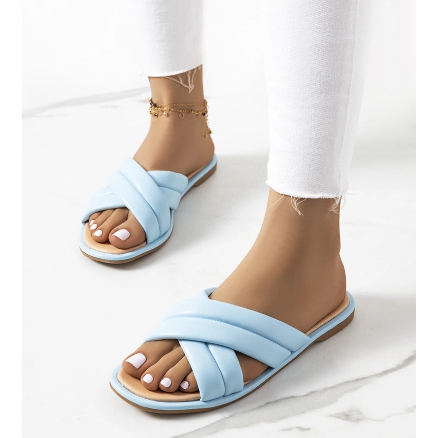 Žabky v krásném modrém odstínu vyrobené z vysoce kvalitní ekologické kůže dodají svěžest každému letnímu stylingu. Materiál vsadky je rovněž vyroben z ekologické kůže, která zajišťuje měkkost a komfort nošení po celý den. Béžová plastová podrážka je lehká a zároveň odolná, což zaručuje stabilitu na jakémkoli povrchu.