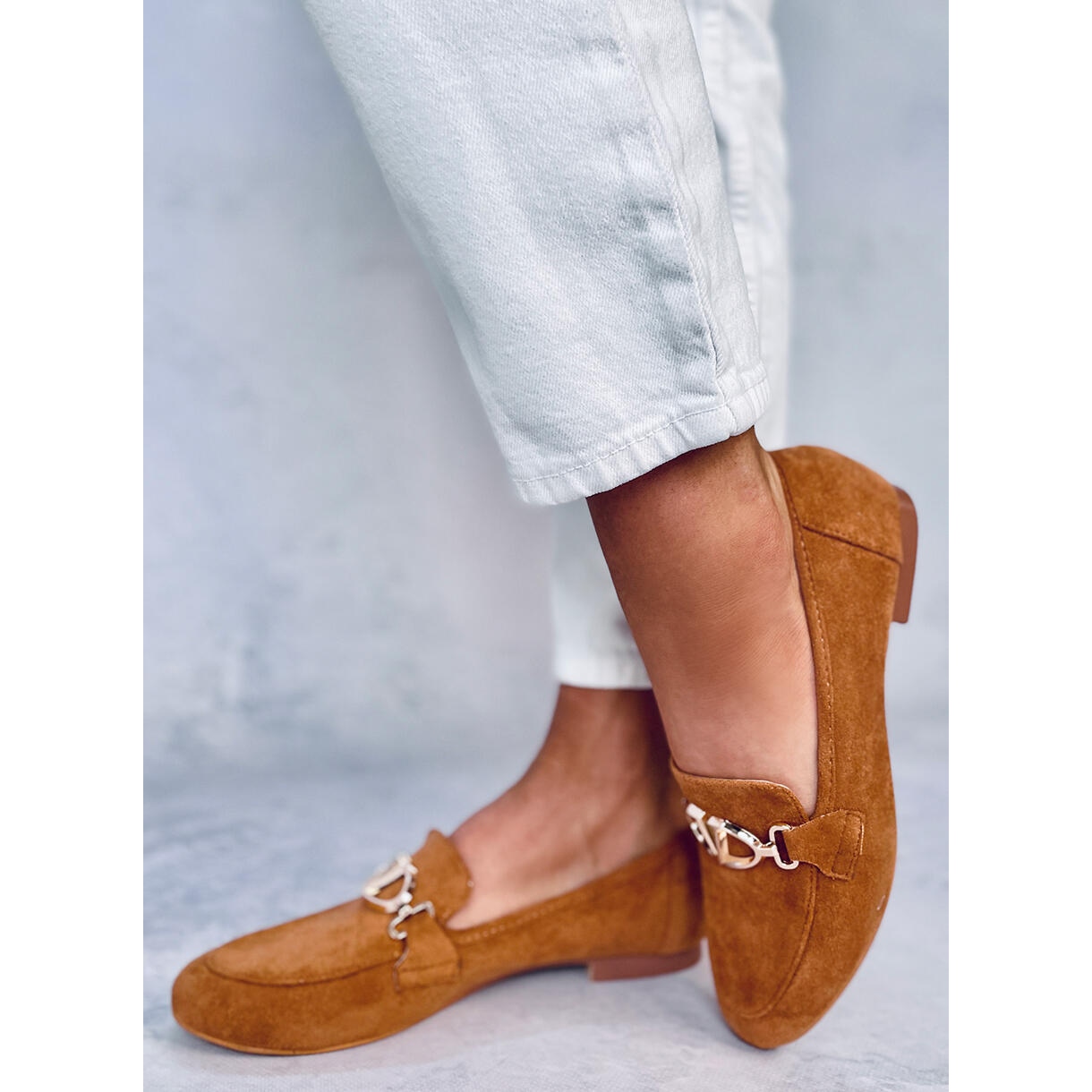 Stylové dámské mokasíny Freda Camel v hnědé barvě jsou perfektní volbou pro každou milovnici elegance a pohodlí. Tyto boty vyrobené z ekologického semiše kombinují klasický design s vkusným zlatým zdobením, které jistě upoutá pozornost. Jejich kulatá špička a plochý podpatek zajišťují pohodlí při celodenním nošení, a to jak v elegantním, tak ležérním stylu.