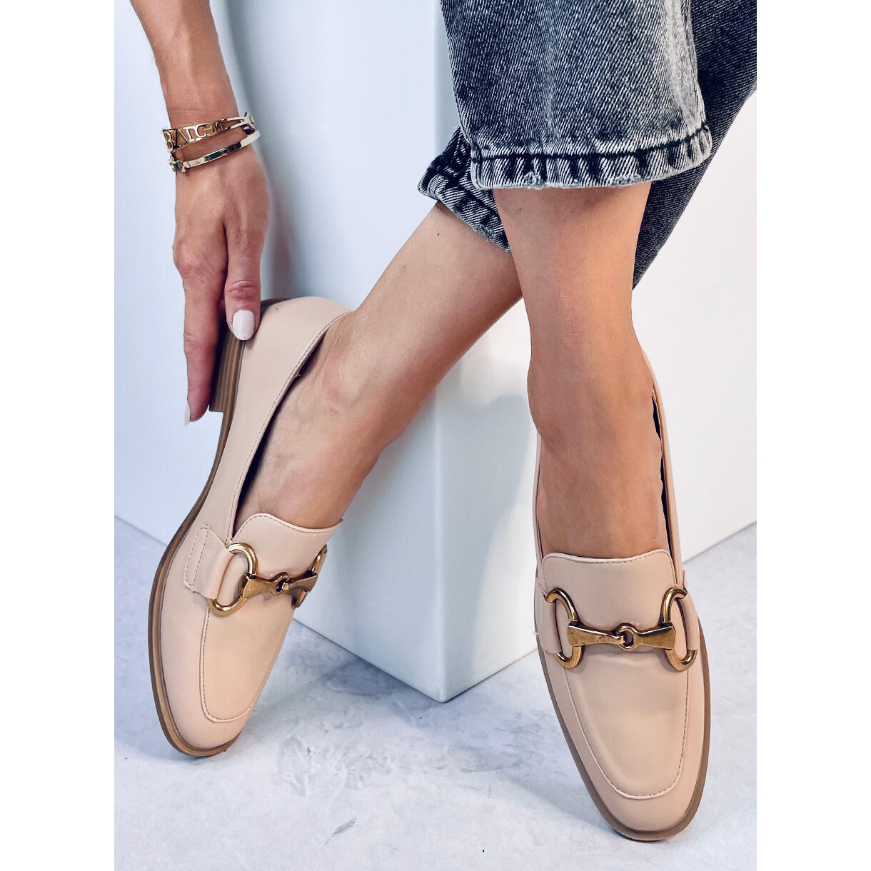 Tyto mokasíny, vyrobené z vysoce kvalitní ekokůže, nabízejí nejen styl, ale i pohodlí při používání. Zlaté zdobení v podobě řetízku dodává eleganci a odlišuje je od ostatních modelů. Plochý 2,5 cm vysoký podpatek zajistí pohodlí při nošení a hladká, béžová barva se skvěle hodí k různým outfitům.
