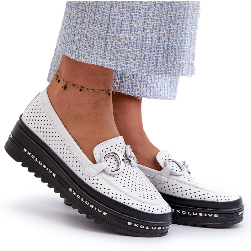 S.Barski S.Barski Dámské mokasíny kožených openworků na platformě s ozdobou S. Barski LR750 White bílý