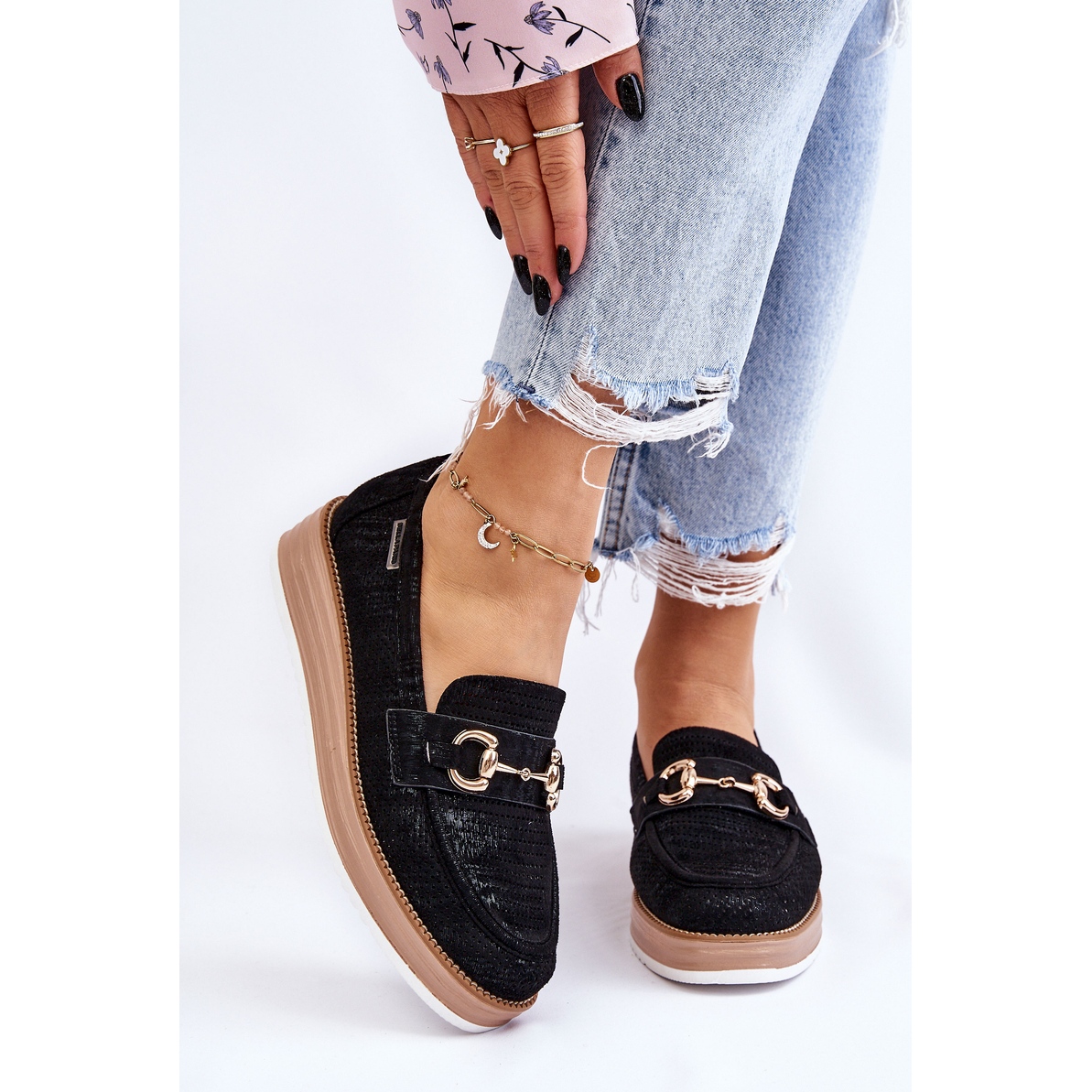 Mokasíny PM1 se vyznačují vyztuženou patou, která navíc zvyšuje jejich stabilitu a komfort nošení. Ozdobný prvek na přední straně jim dodává jedinečný charakter a černá barva z nich dělá perfektní doplněk mnoha jarních a podzimních stylů. Díky horní výšce 5,5 cm a výšce platformy 2,5 cm tyto boty nejen skvěle vypadají, ale také opticky prodlouží nohy.