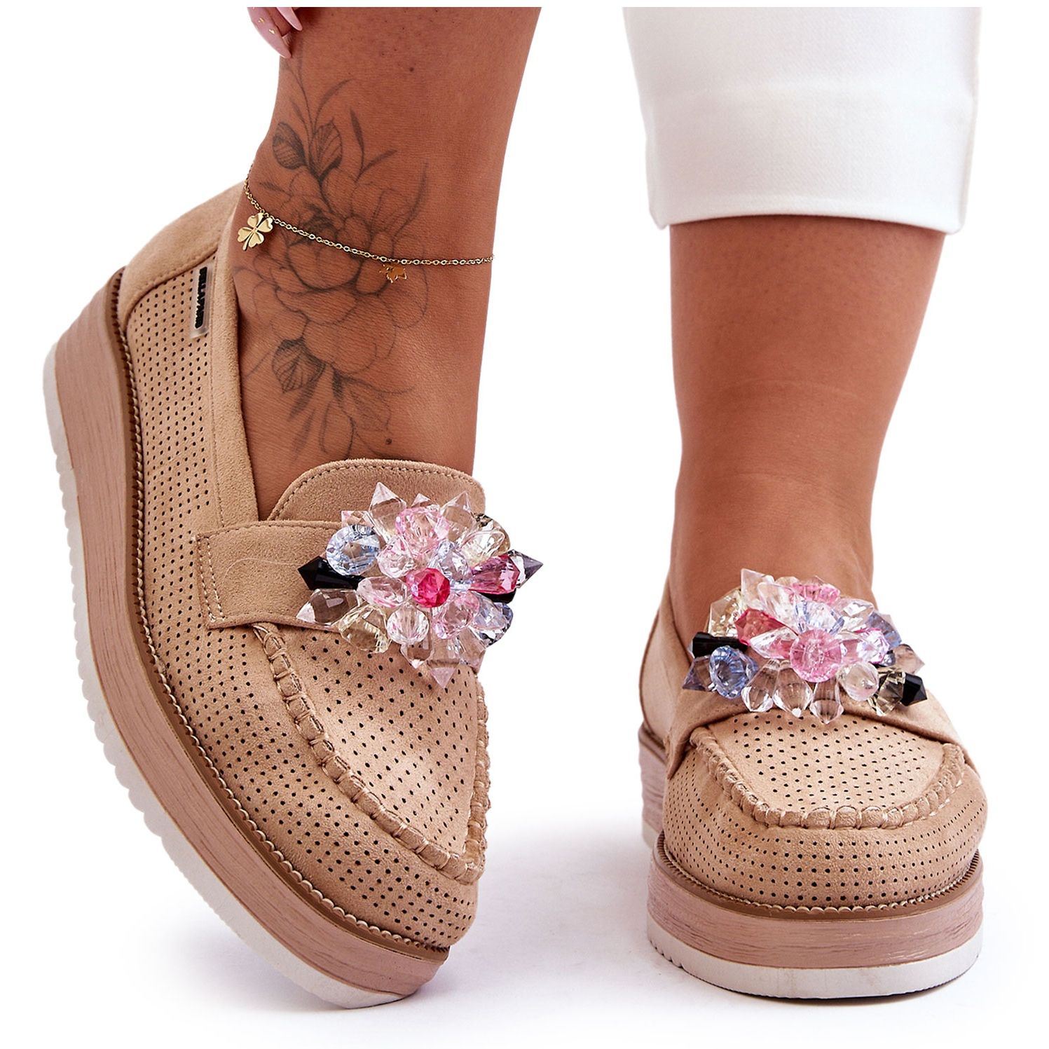 PM1 PM1 Dámské mokasíny na platformě s kamínky béžová Elonore béžový