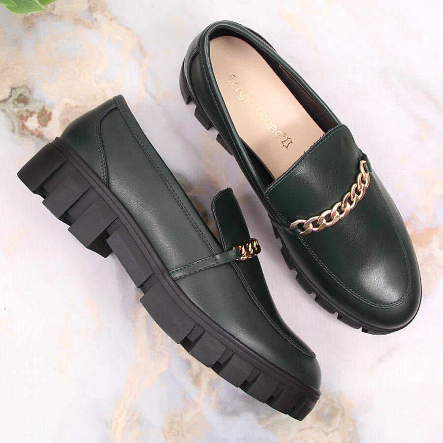Podrobnosti: Dámské mokasíny na platformě se zeleným řetízkem Sergio Leone zelená