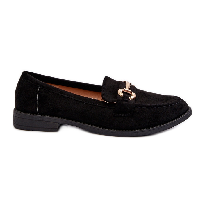 Dámské mokasíny na plochém podpatku s ozdobou, černá aviole černý