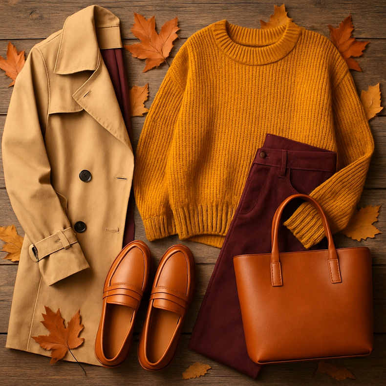 Karamelové nebo koňakové mokasíny nesmí chybět ve vašem podzimním šatníku. Noste je k úzkým vínovým nebo tmavě lahvově zeleným kalhotám. Oblečte si oversized svetr v odstínu hořčičné nebo zázvorově hnědé. Tento styling doplní dlouhý trenčkot v klasické béžové a kožená taška v podobném odstínu jako mokasíny. Tato sada bude dobře fungovat jak při každodenních činnostech, tak v méně formálním pracovním prostředí.