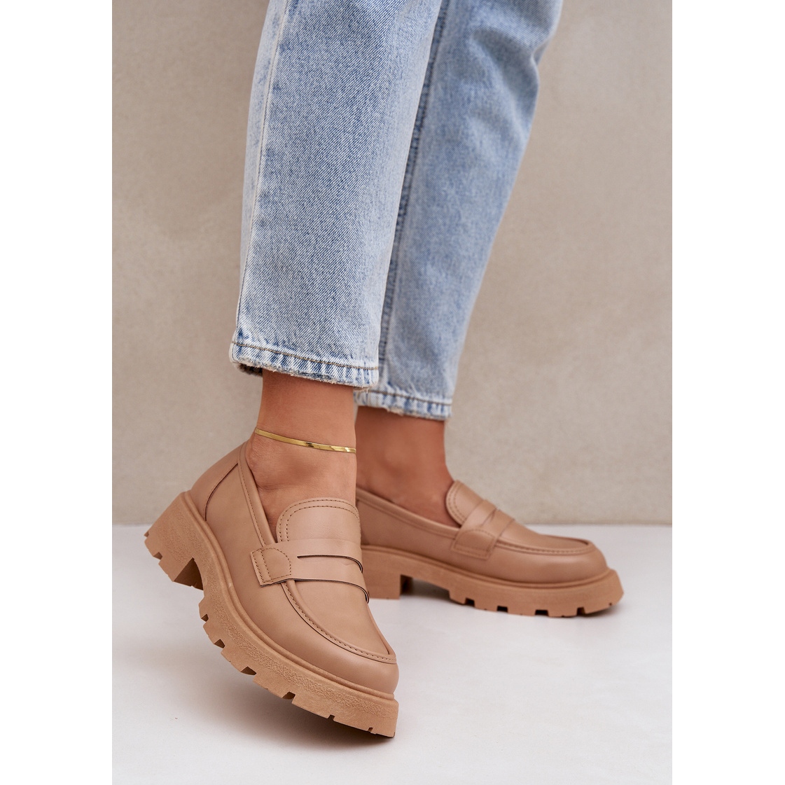 Díky kulatému špičce vypadají mokasíny jemně a elegantně. Rovněž stojí za to věnovat pozornost jejich nadčasové béžové barvě, která se perfektně děje s mnoha styly a barvami. Jsou ideální pro různé příležitosti, od procházek po městě, přes setkání s přáteli, až po oficiální akce.