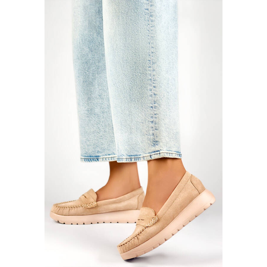** Dámské mokasíny na silném semišovém podrážce Beige 24-21338be **