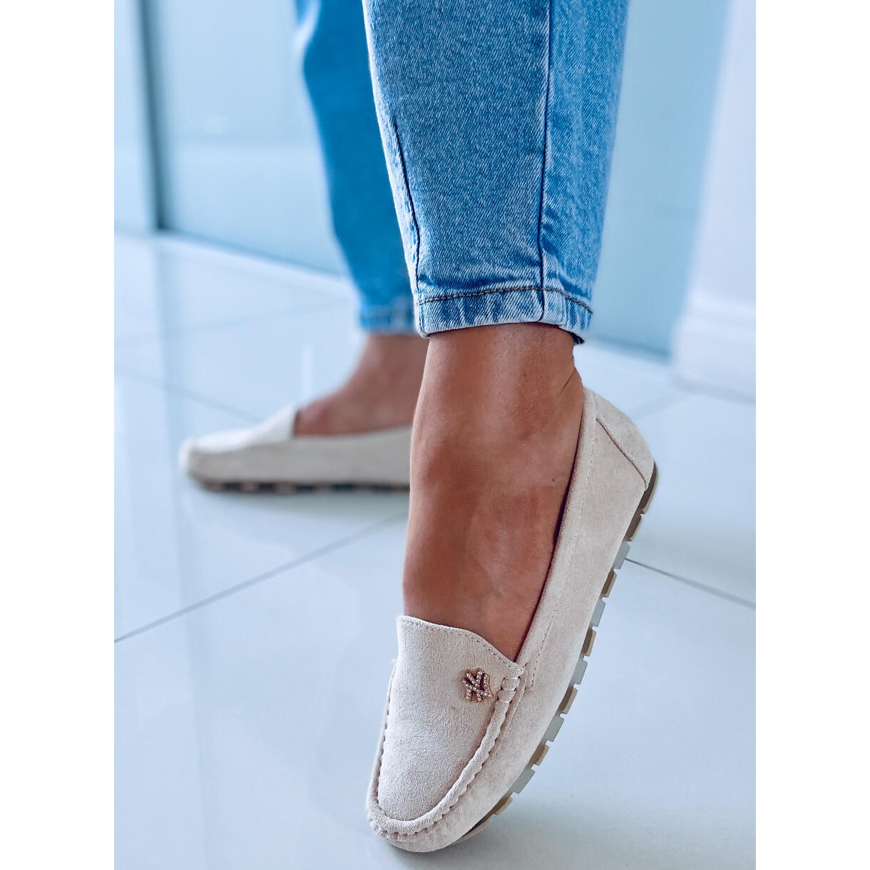 Dámské mokasíny PA1 Sekue v béžové barvě jsou perfektní volbou pro každou módní ženu, která si cení pohodlí a elegance každý den. Tyto semišové boty kombinují klasický design s moderním akcentem - lesklé zlaté zdobení, které jim dodává jedinečný charakter.