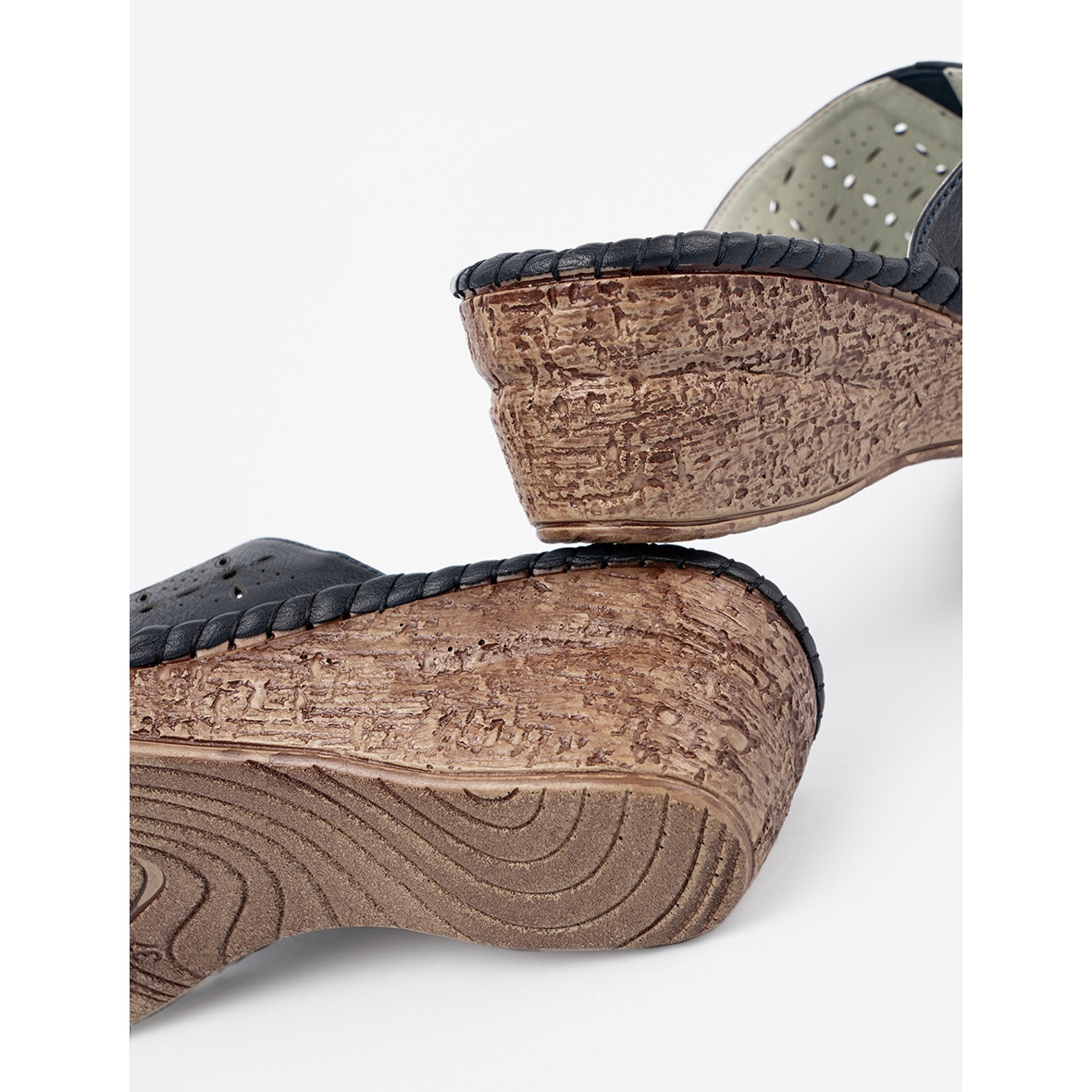 Námořní modrý odstín s modrým přízvukem přidá každou léto stylizaci čerstvost a hnědá podrážka jde dobře s různými barvami, což vám umožní vytvořit mnoho módních sad. Posuvná spona usnadňuje žabky.