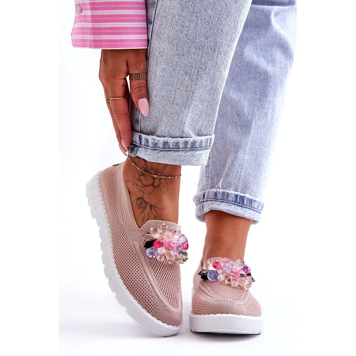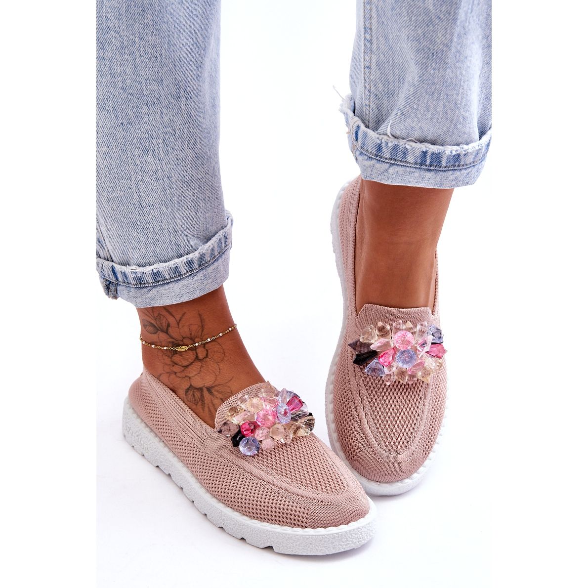 Dámské tenisky sklouzly ozdobou - růžové