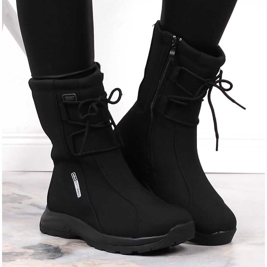 Dámské voděodolné sněhule DK v černé barvě jsou perfektní volbou pro zimní dny. Tyto boty vyrobené z inovativního materiálu AQUA SOFT SHELL jsou nejen stylové, ale také funkční. Jsou větruodolné a prodyšné, což nejen chrání před chladem, ale také účinně odvádí vlhkost a zajišťuje komfort nošení i v náročných povětrnostních podmínkách.