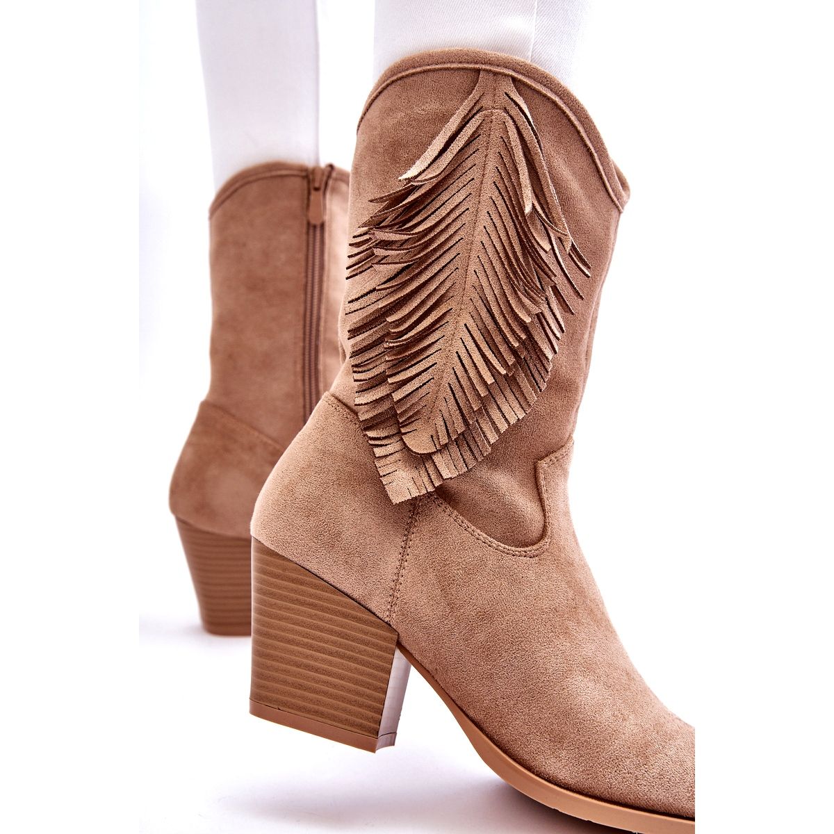 - Modelka: Dámské semišové kovbojské boty
