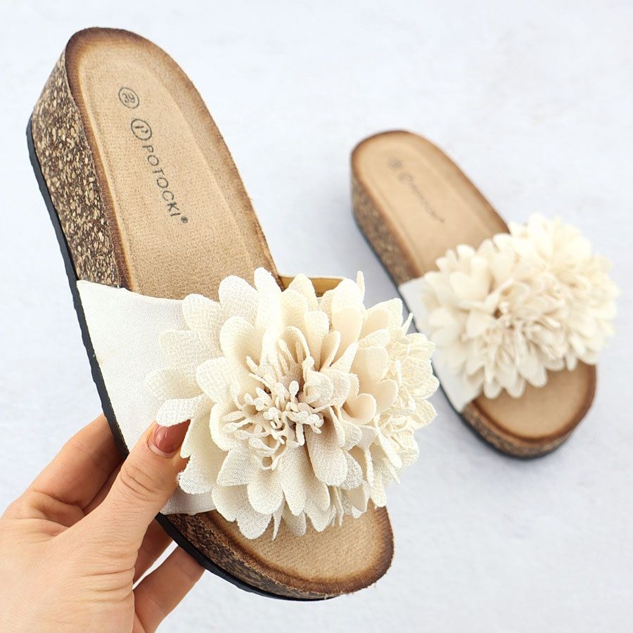 Podrobnosti: Dámské otoky -Flops na klínech Béžové květiny z Potocki GN17300 béžový