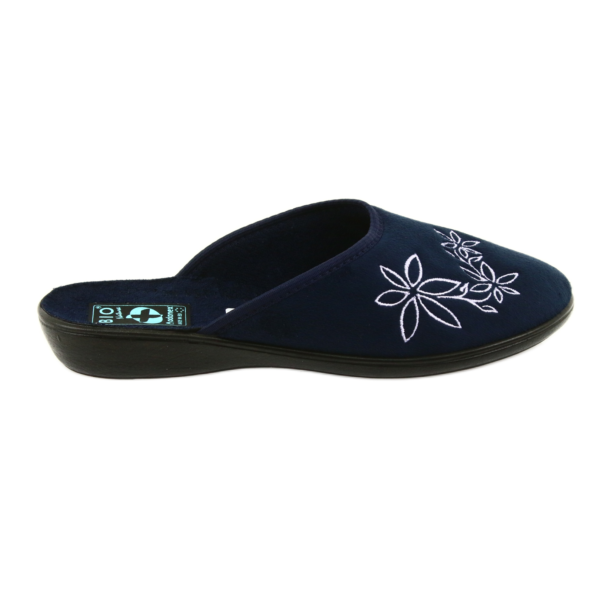 Dámské pantofle Adanex 23931 v tmavě modré barvě jsou perfektní volbou pro ženy, které hledají pohodlí a styl v každodenní domácí obuvi. Tyto pantofle vyrobené z vysoce kvalitního bavlněného semišového úpletu jsou nejen odolné, ale také příjemné na dotek. Jejich elegantní tmavě modrá barva je obohacena o jemné květinové výšivky, které jim dodávají kouzlo a skvěle se hodí k různým domácím stylům.