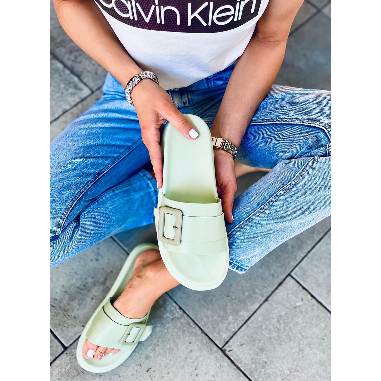Objevte pohodlí a módní design v dámských pantoflích Alana Verde v zeleném odstínu! Tyto stylové žabky se vyznačují vysokou podrážkou a atraktivní přezkou, která jim dodává charakter. Poskytují široký pásek, který perfektně drží nohu, díky čemuž je jejich nošení bezkonkurenční a každý krok, který v nich uděláte, je čistým potěšením.