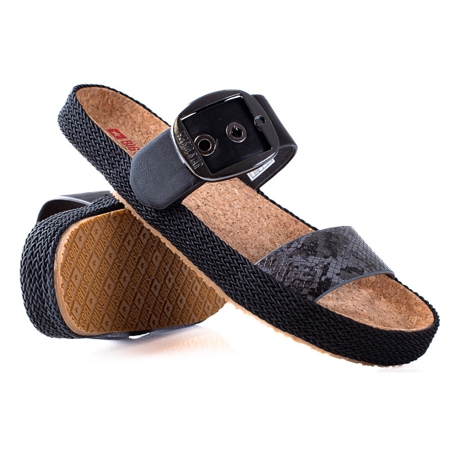 Elegantní, černé ženské pantofle značky Big Star navržená pro pohodlí a univerzální styl. Jednoduchý, navržený design způsobuje, že model dokonale odpovídá mnoha letním stylizacím - od neformálních sad s džíny po lehké šaty a šortky.
