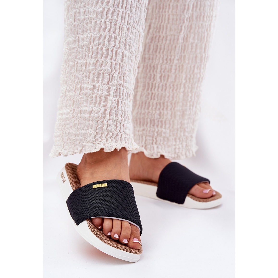 Dámské pantofle Big Star RR274A108 Black je ideální volbou pro letní dny pro každou módní ženu. Tyto žabky jsou vyrobeny z vysoce kvalitního textilního materiálu, kombinují lehkost, pohodlí a eleganci. Jejich pěna podrážka s výškou 3 cm poskytuje maximální pohodlí, což z nich činí vynikající volbu pro dlouhé procházky po pláži nebo víkendové výlety do města.
