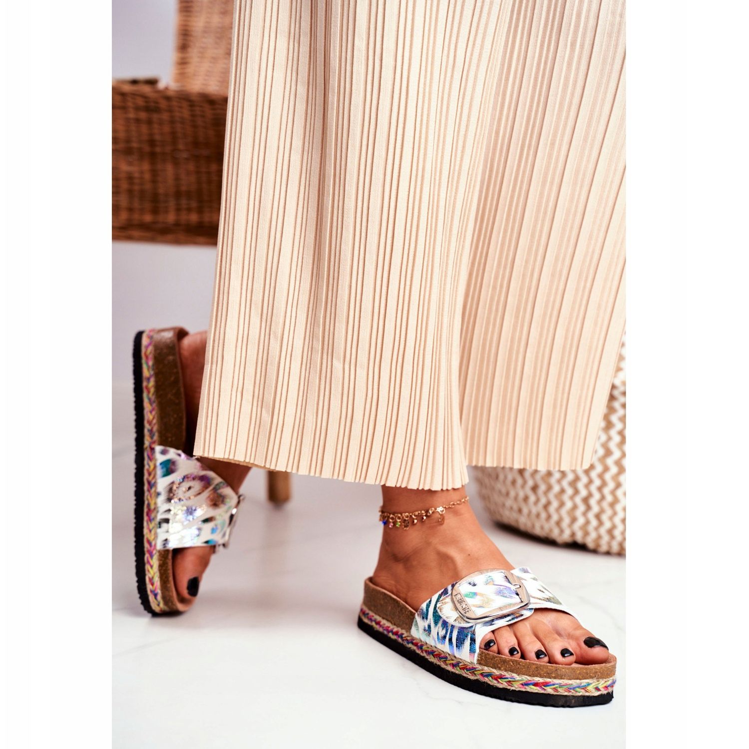 Big Star Dámské pantofle Big Star s metalickým vzorem DD274127 bílý