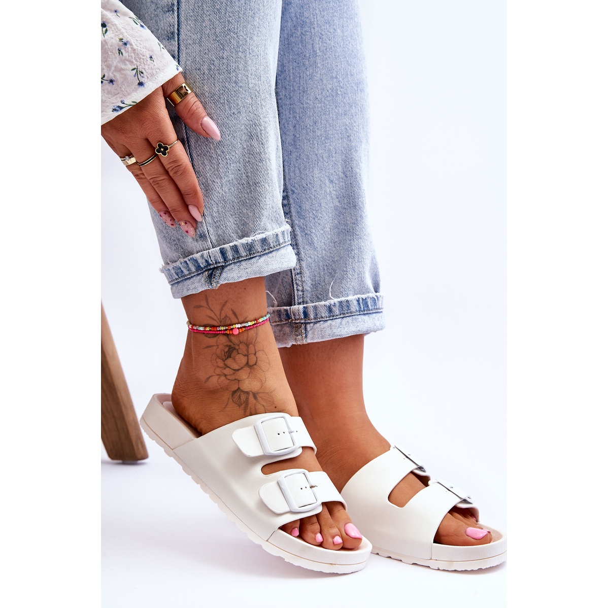 Dámské žabky na platformě White Vertigo jsou perfektní nabídkou pro letní dny pro ženy, které oceňují pohodlí a módní styl. Vyrobeny z vysoce kvalitní ekokůže zaručují nejen elegantní vzhled, ale také pohodlí při nošení. Tento model je vybaven dvěma širokými popruhy se zapínáním na přezku, které lze libovolně nastavit podle individuálních potřeb.