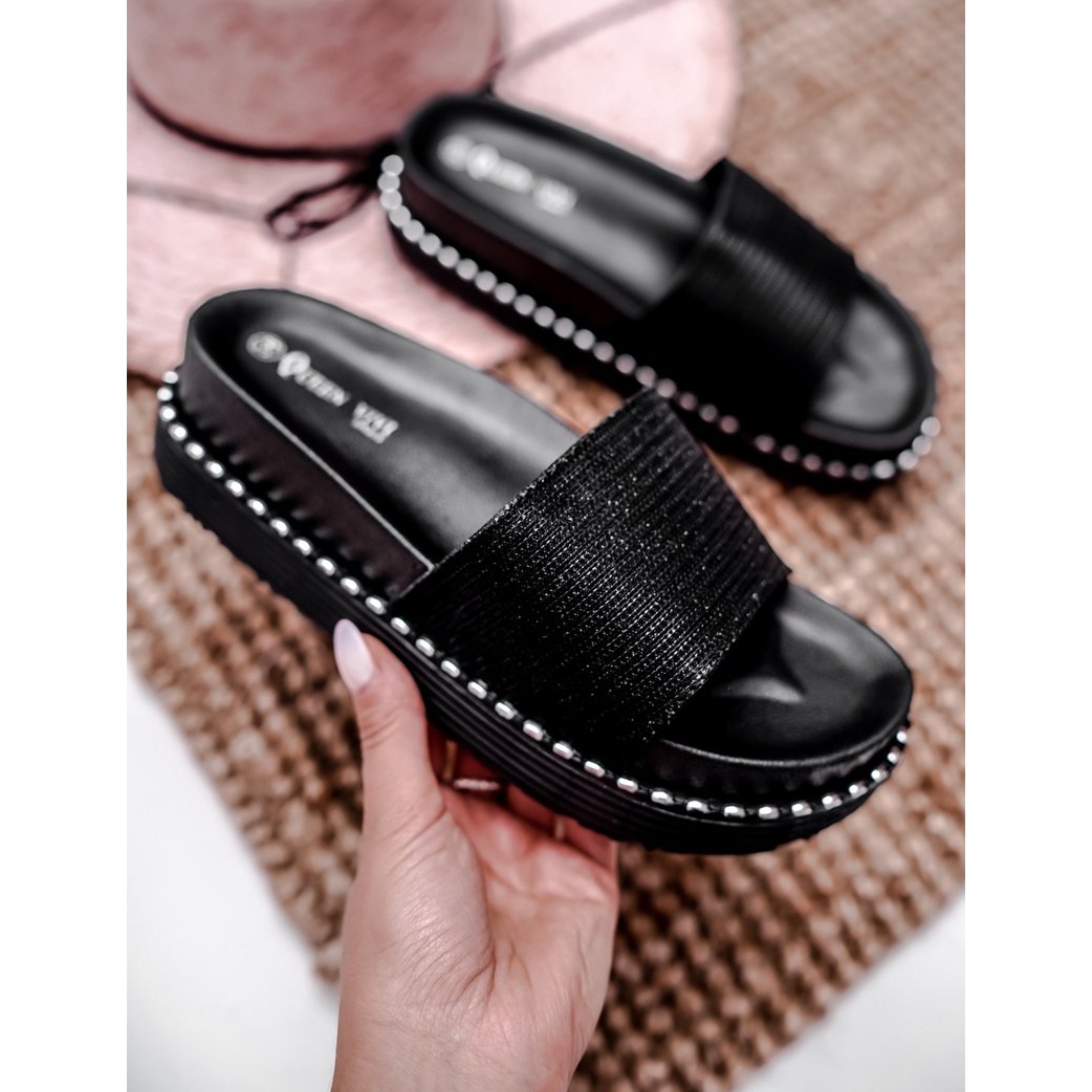Dámské pantofle na platformě Black Silver Venima černý