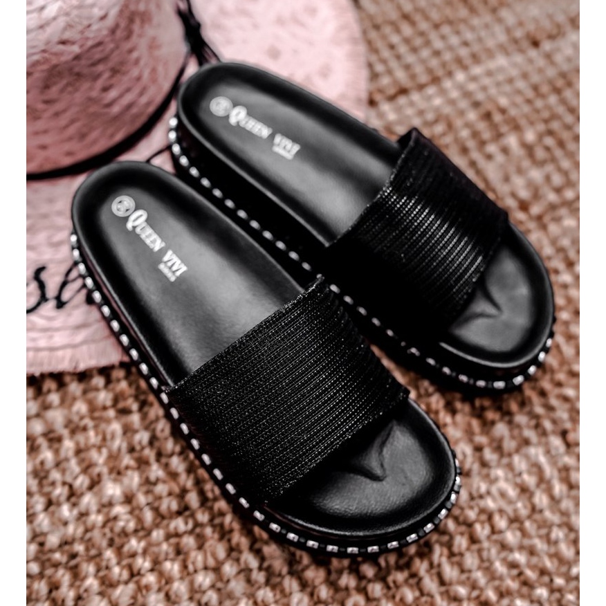 Dámské pantofle na platformě Venima - kombinace pohodlí a moderního stylu. Černá, lehká plastová podešvá s jemnými, stříbrnými detaily přidává postavu a ozdobný popruh s kovovým šitím upouští oko. Sklouzl model, bez izolace a bez paty, denně perfektní.