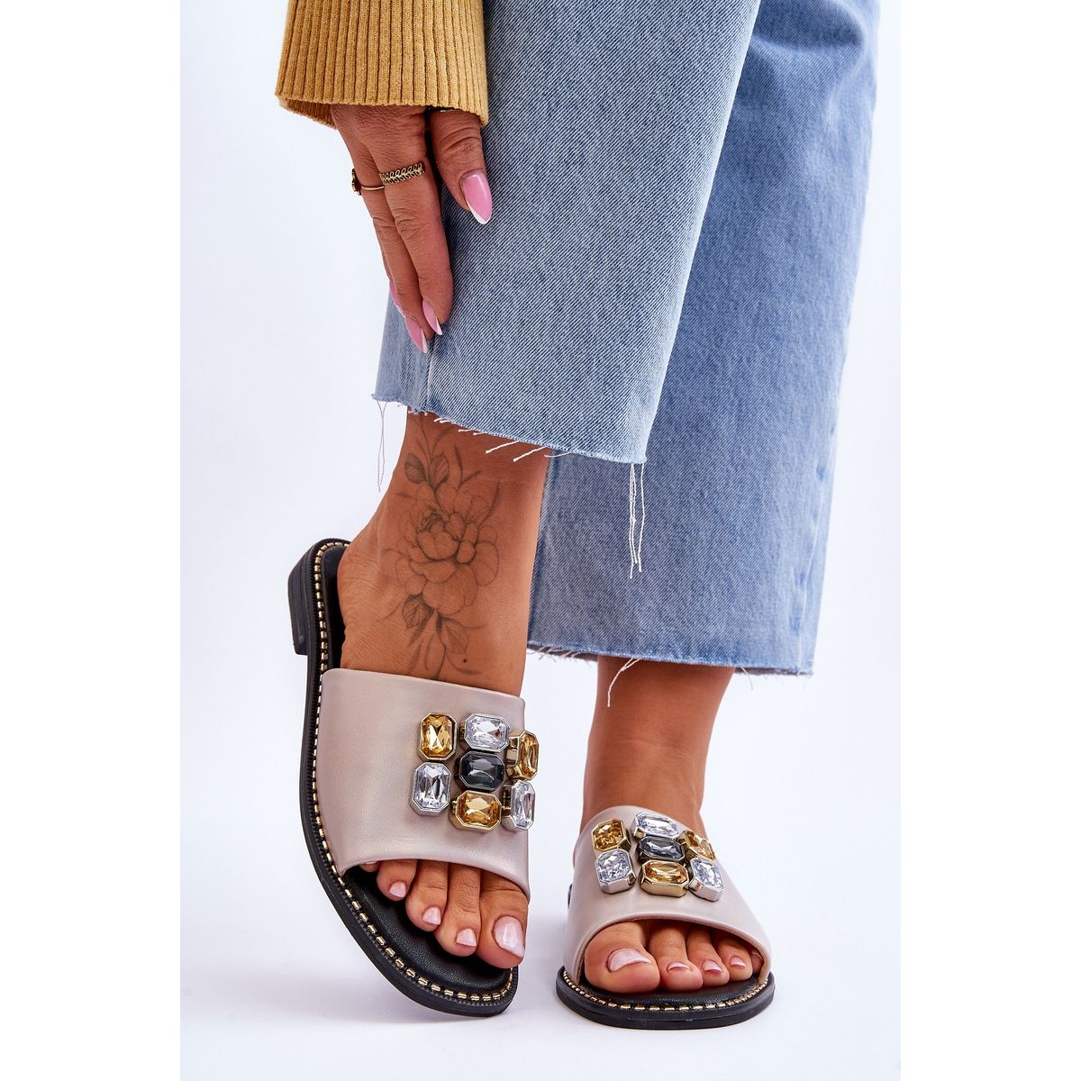 S.Barski Dámské pantofle s kamínky S.Barski KV-2775-31 Nude béžový