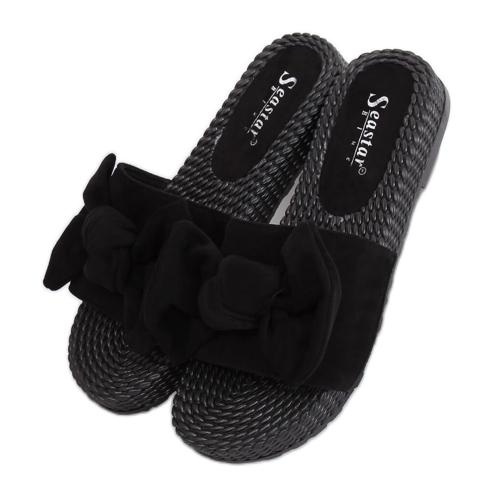 Inna marka Černé dámské pantofle s mašlí YQ225P Black černá