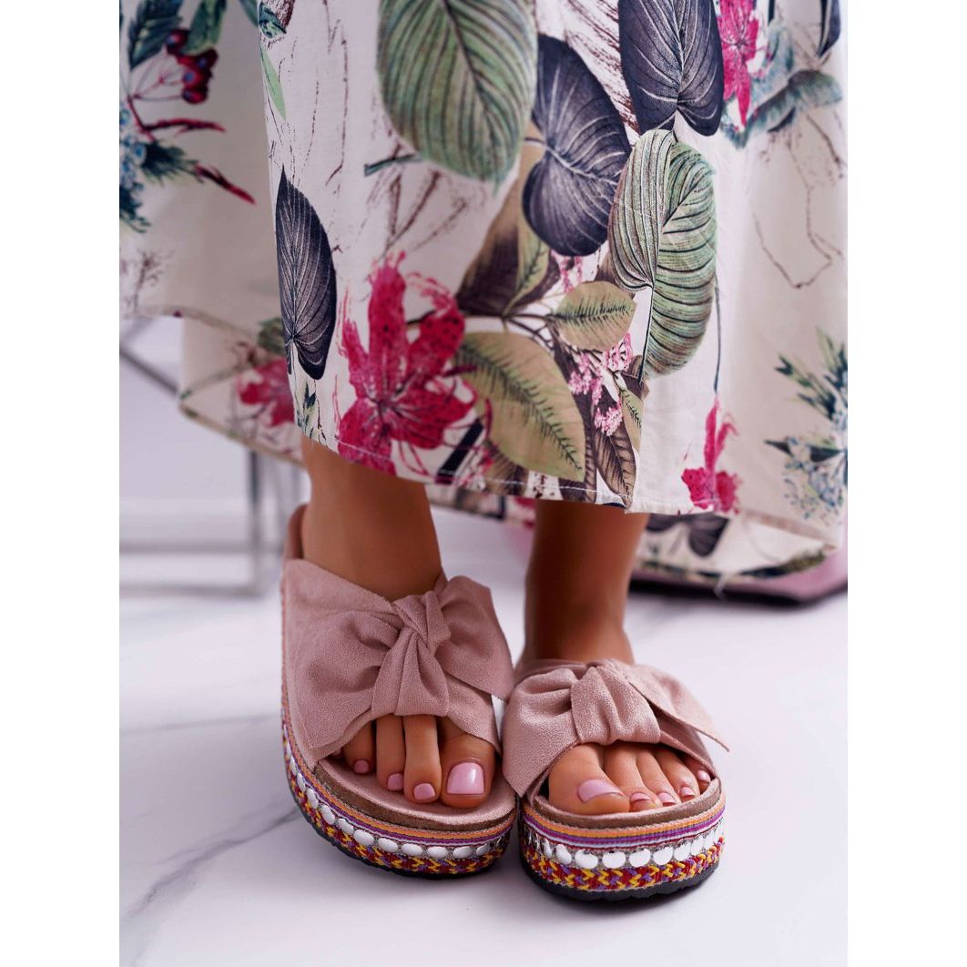 ADY Dámské pantofle se silnou mašlí na podrážce Pink Milady růžový
