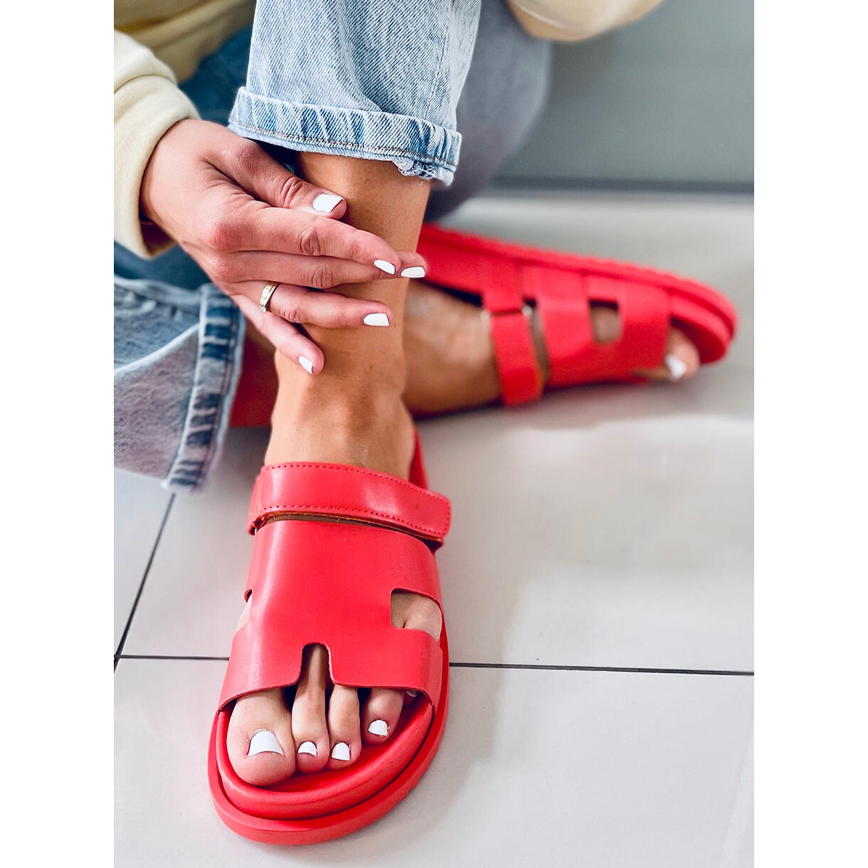 Navrženy pro maximální pohodlí, žabky mají tvarovanou stélku, díky které jsou perfektní volbou na dlouhé procházky a každodenní výlety. Díky plochému 2,0 cm vysokému podpatku budou vaše nohy lehké a volné po celý den. Hladký vzor a intenzivní oranžová barva jim dodávají jedinečný charakter, takže je lze snadno sladit s mnoha styly.
