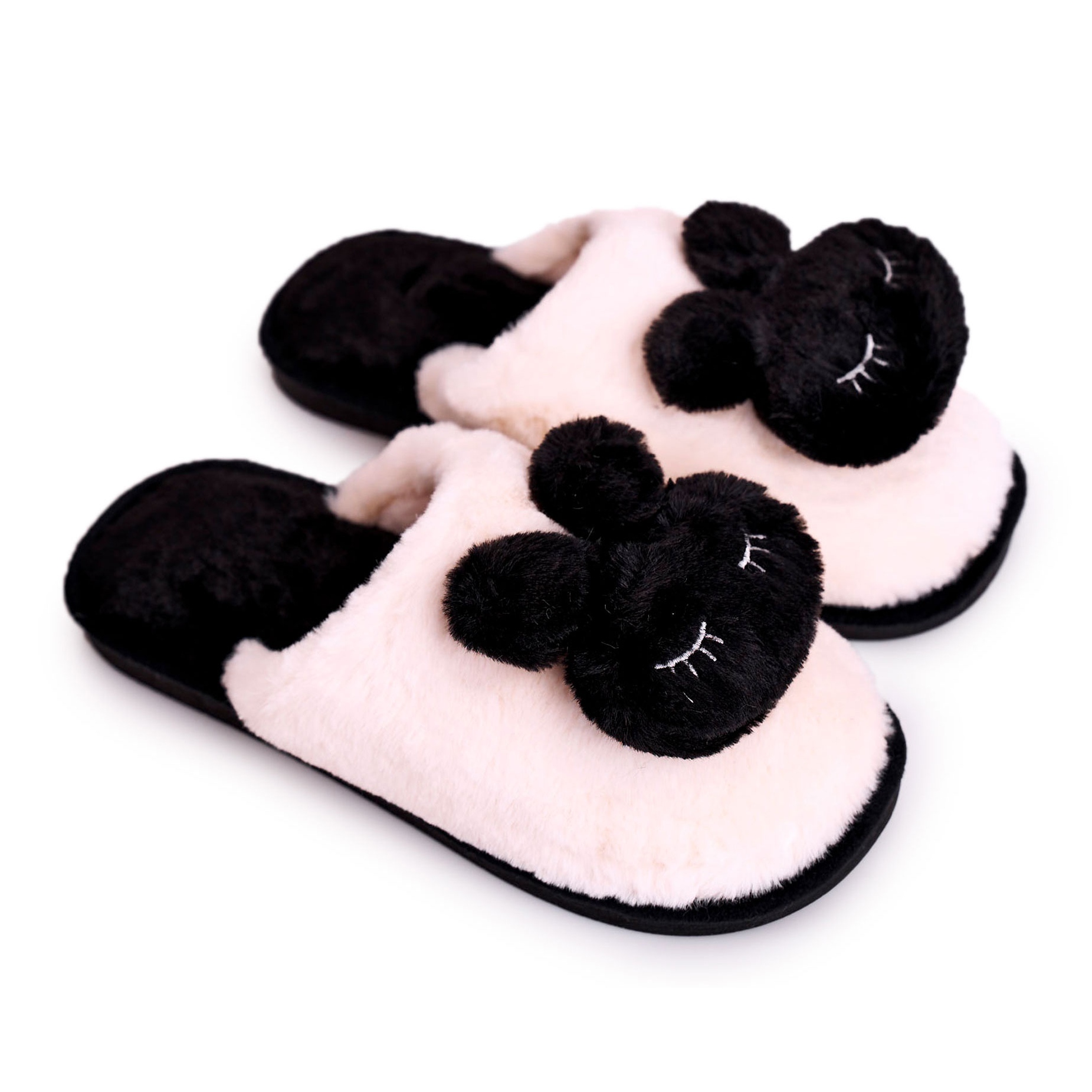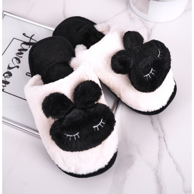 Inna marka Dámské pantofle z černé králičí kožešiny bílý černá