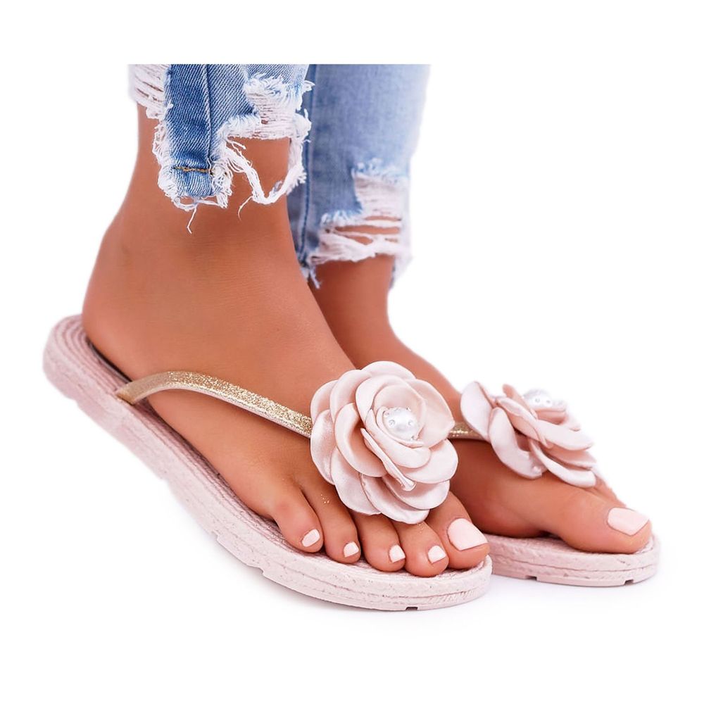 Inna marka Dámské pantofle Žabky Béžový květ Glitter Elenda