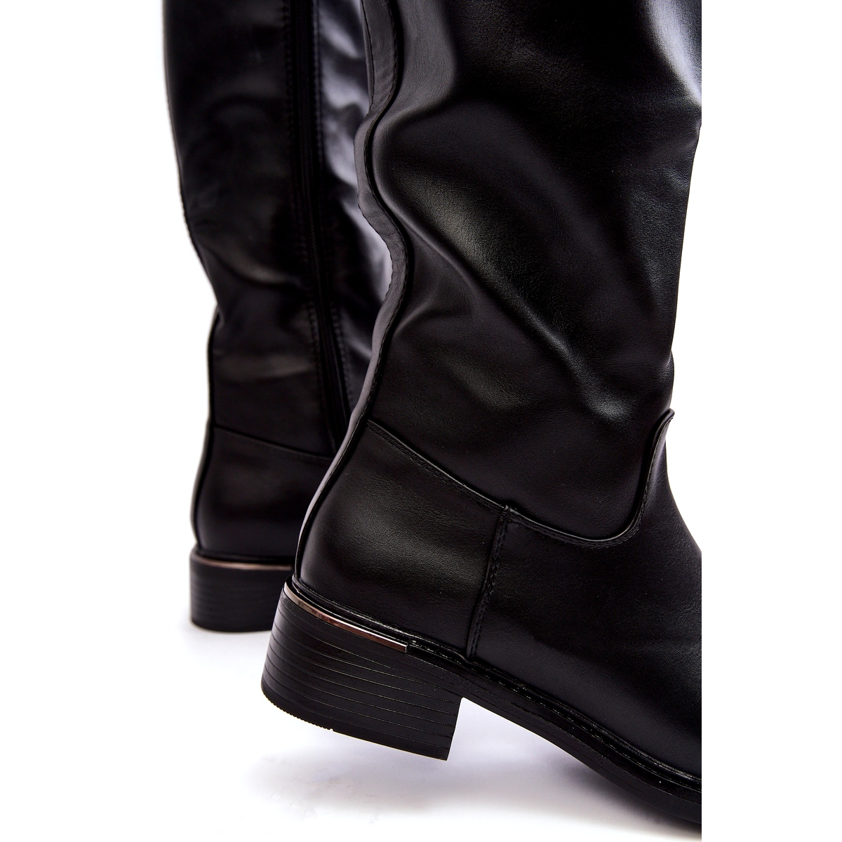 Diamantique Dámské ploché boty před kolenním černým kolenem