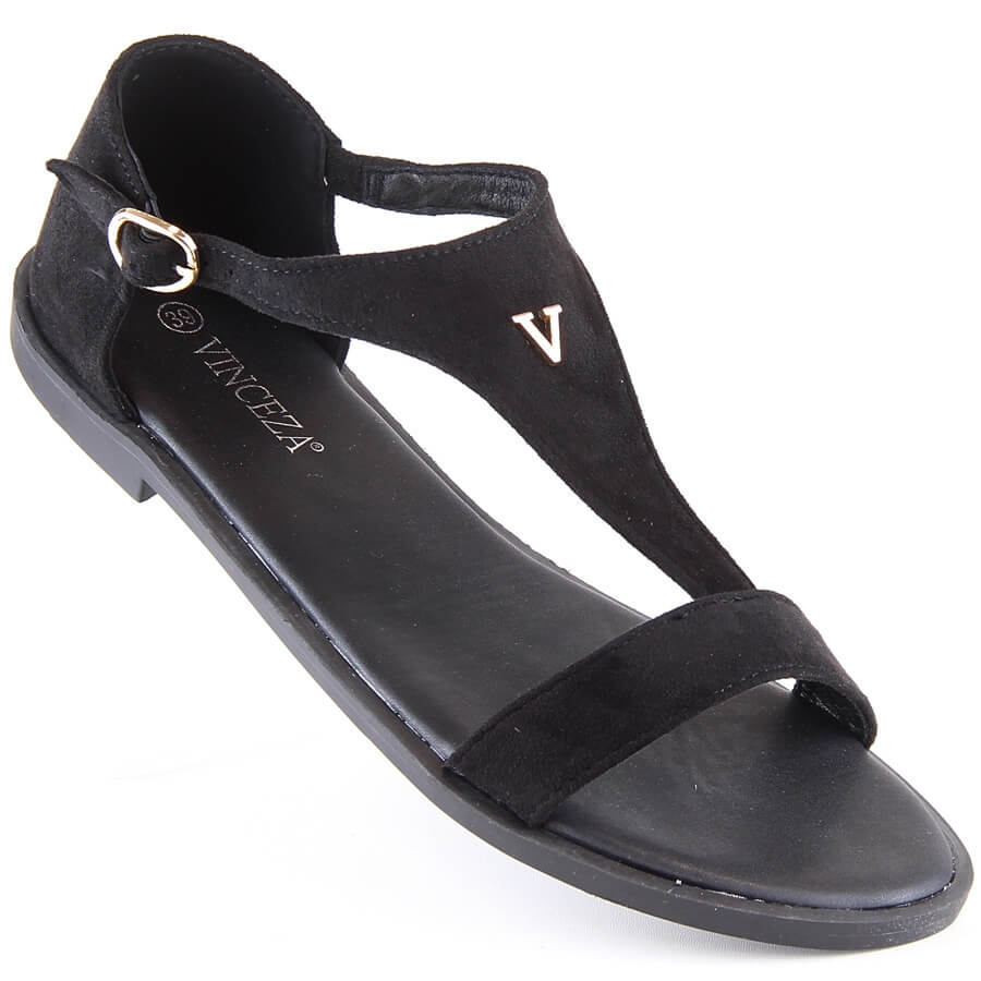 Vinceza Dámské ploché černé semišové sandály Vinceza 17270 černá