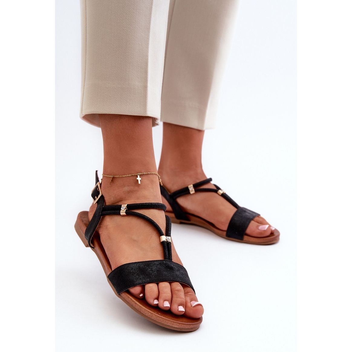 S.Barski Dámské ploché sandály s řemínky S.Barski KV27-010 Black černá