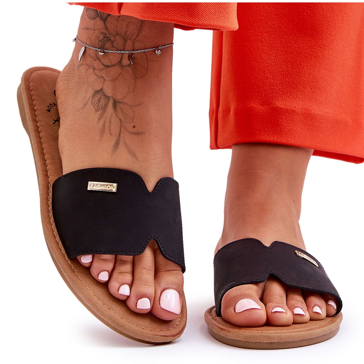 Elegantní, černé korálové klapky vyrobené z ekologické kůže je nezbytným jarním šatníkem. Model kombinuje jednoduchou, nadčasovou formu s pohodlím: posuvnou strukturu, mírně zaoblený, objevený nos a dekorativní podnos na pečení na přední straně přidejte jemný styl. Ideální pro procházku, do práce nebo nakupování.