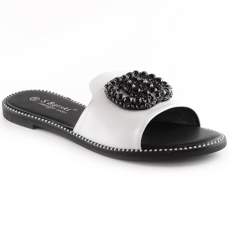 S.Barski Dámské pohodlné ploché pantofle se zirkony stříbrné S.Barski Kv 520-30 stříbrný