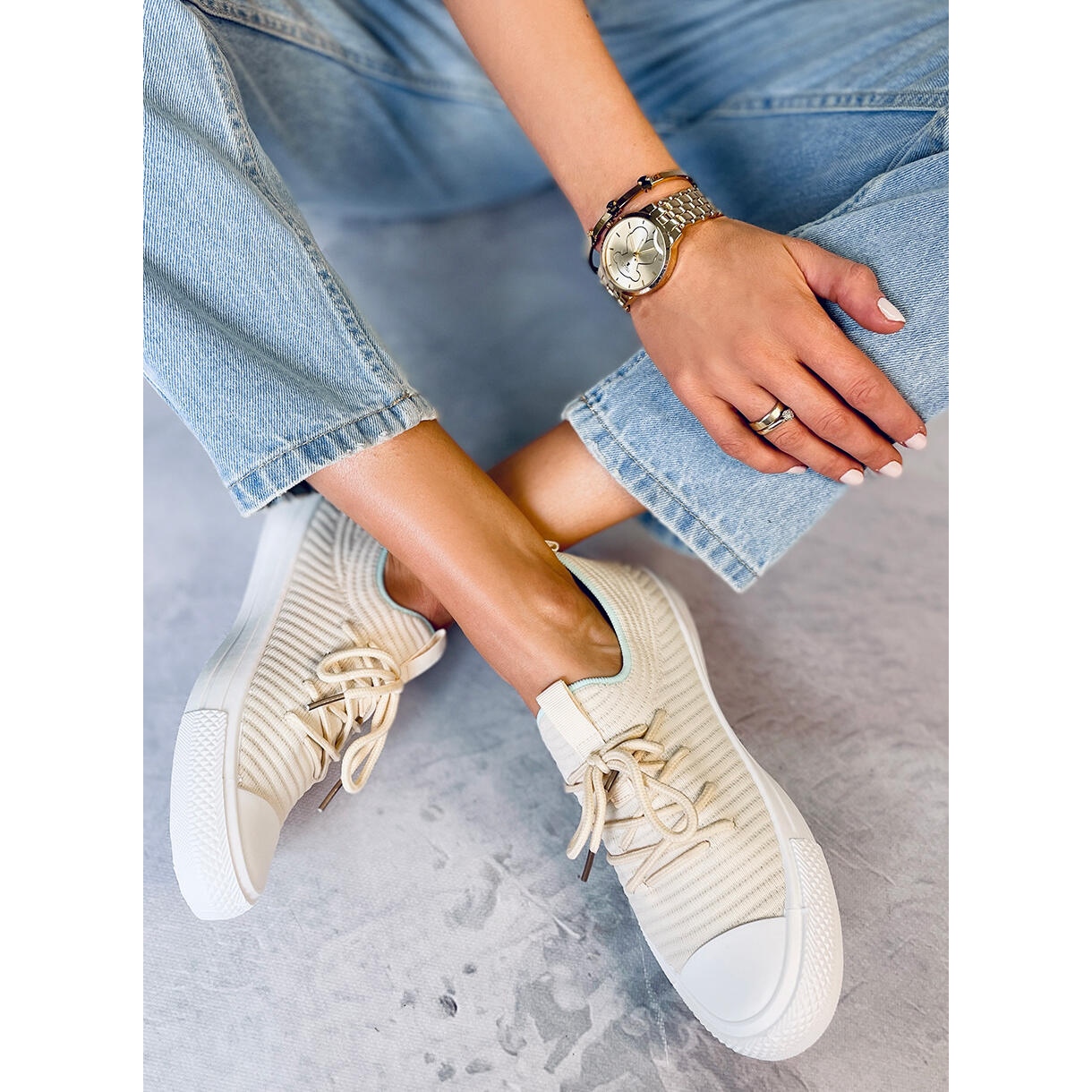 Představujeme dámské ponožkové tenisky BM Bruni v odstínu béžové, které dokonale splňují každodenní potřeby moderních žen. Tyto módní tenisky, vyrobené z elastické tkaniny, dokonale padnou na nohu a zajišťují maximální pohodlí při nošení. Díky plochému 2 cm vysokému podpatku jsou ideální na dlouhé procházky nebo každodenní aktivity.