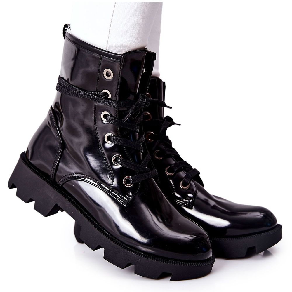 Boty vyrobené z vysoce kvalitní lakované kůže vypadají velmi efektně a jejich černá barva se skvěle hodí k nejrůznějším stylům. Kulatá špička dodává jemnost a vysoký shaft dlouhý 16 cm poskytuje kotníku dostatečnou oporu. Díky plochému podpatku, který měří pouhé 3 cm, si můžete užívat pohodlí po celý den.